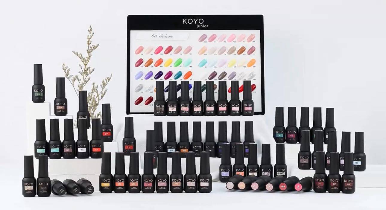 מזוודת מיני קויו KOYO מכילה 64 בקבוקים במזוודה 60 גווני לק ג׳ל במזוודה 7 מ״ל בבקבוק ובנוסף ראבר בייס/ראבר בייס אקסטרה/טופ/טופ מאט